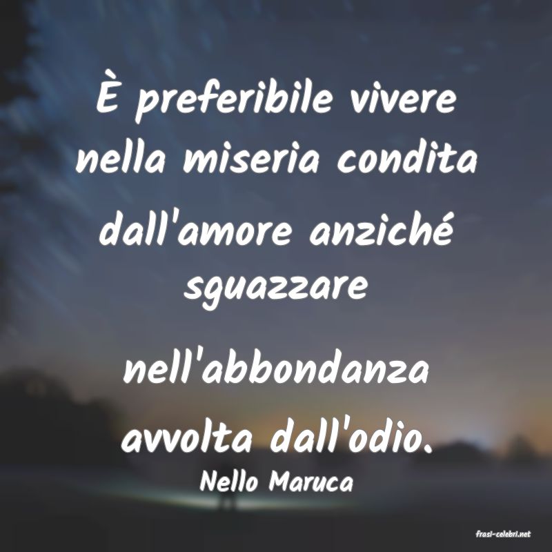 È preferibile vivere nella miseria condita dall'amore anziché sguazzare nell'abbondanza avvolta dall'odio.