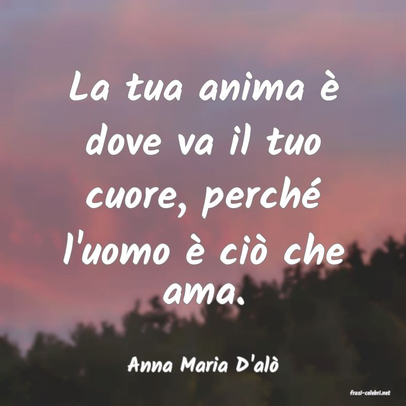 La tua anima è dove va il tuo cuore, perché l'uomo è ciò che ama.