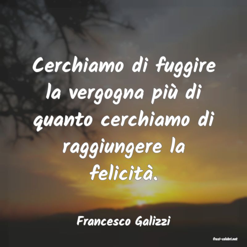 Cerchiamo di fuggire la vergogna più di quanto cerchiamo di raggiungere la felicità. Francesco Galizzi