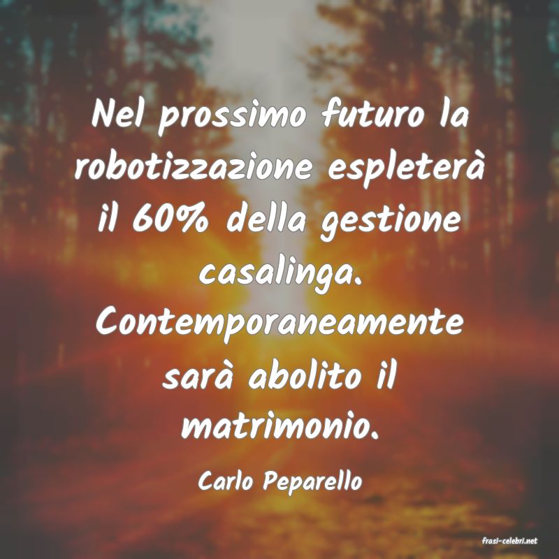 Nel prossimo futuro la robotizzazione espleterà il 60% della gestione casalinga. Contemporaneamente sarà abolito il matrimonio.