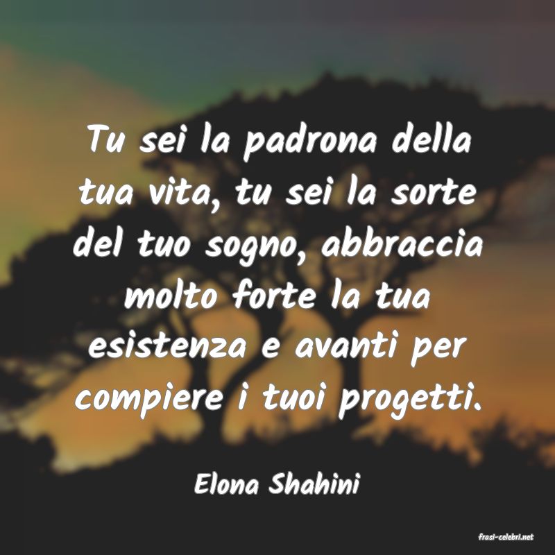 Tu sei la padrona della tua vita, tu sei la sorte del tuo sogno, abbraccia molto forte la tua esistenza e avanti per compiere i tuoi progetti.