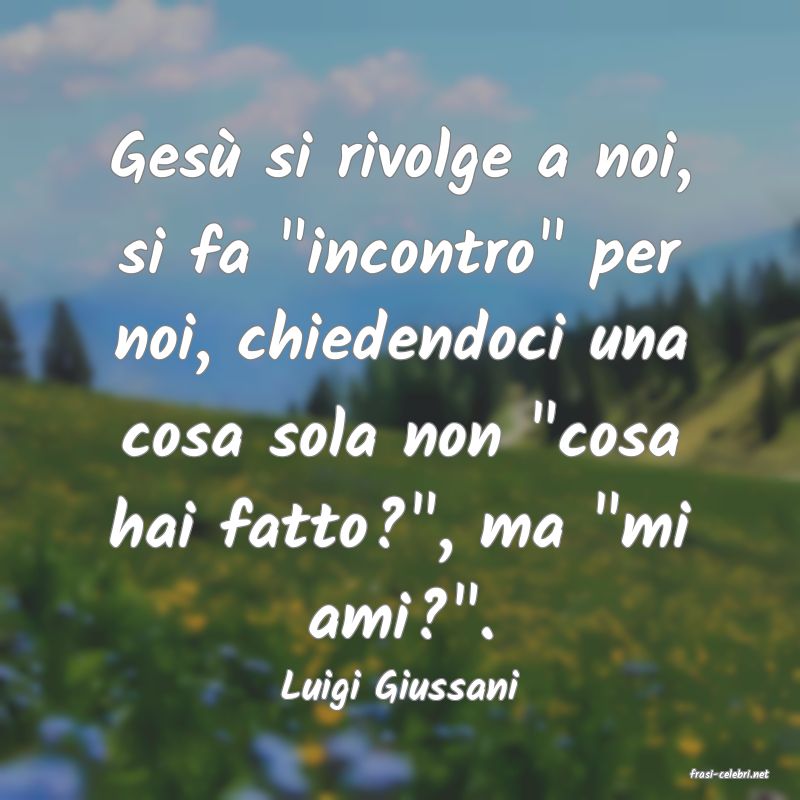 Gesù si rivolge a noi, si fa "incontro" per noi, chiedendoci una cosa sola non "cosa hai fatto?", ma "mi ami?".