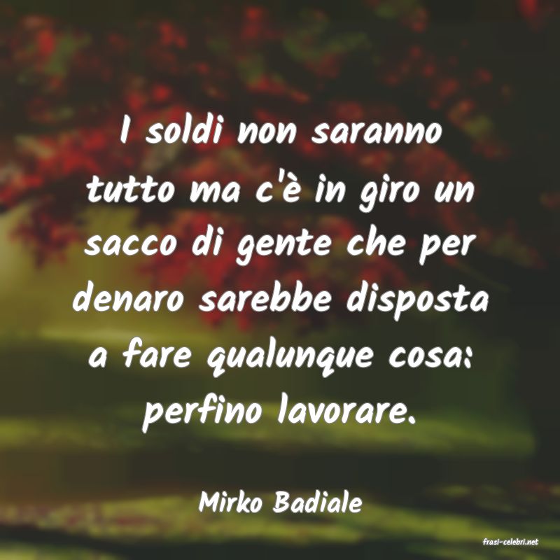 I soldi non saranno tutto ma c'è in giro un sacco di gente che per denaro sarebbe disposta a fare qualunque cosa: perfino lavorare.