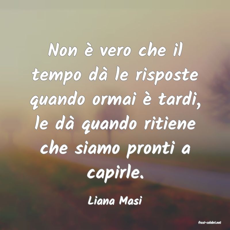 Non è vero che il tempo dà le risposte quando ormai è tardi, le dà quando ritiene che siamo pronti a capirle.