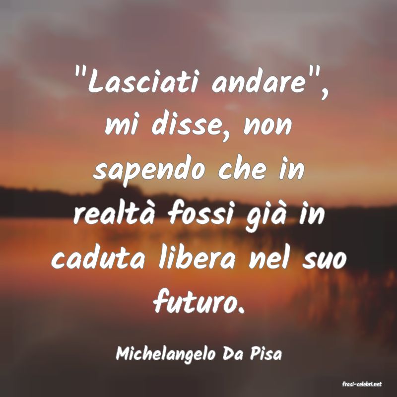 "Lasciati andare", mi disse, non sapendo che in realtà fossi già in caduta libera nel suo futuro.