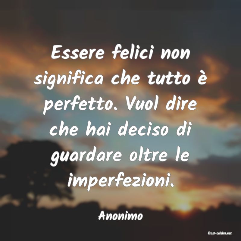 Essere felici non significa che tutto è perfetto. Vuol dire che hai deciso di guardare oltre le imperfezioni.