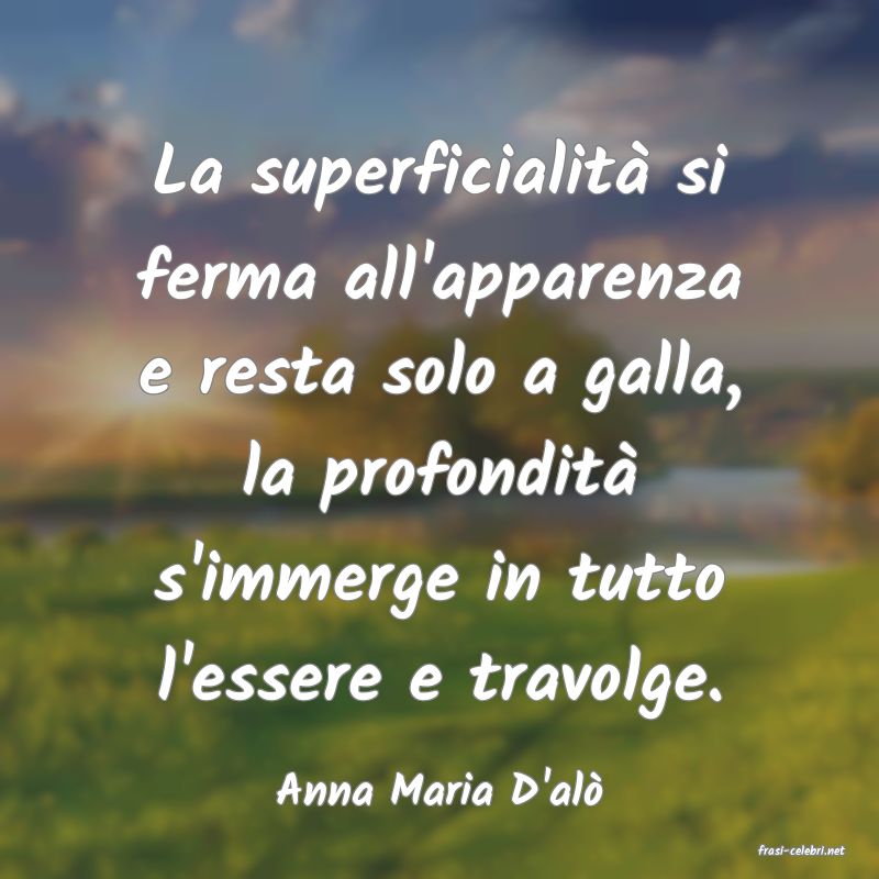 La superficialità si ferma all'apparenza e resta solo a galla, la profondità s'immerge in tutto l'essere e travolge. Anna Maria D'al?