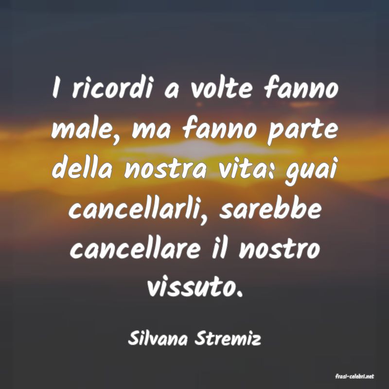 I ricordi a volte fanno male, ma fanno parte della nostra vita: guai cancellarli, sarebbe cancellare il nostro vissuto.