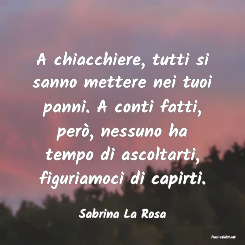 A chiacchiere, tutti si sanno mettere nei tuoi panni. A conti fatti, però, nessuno ha tempo di ascoltarti, figuriamoci di capirti.