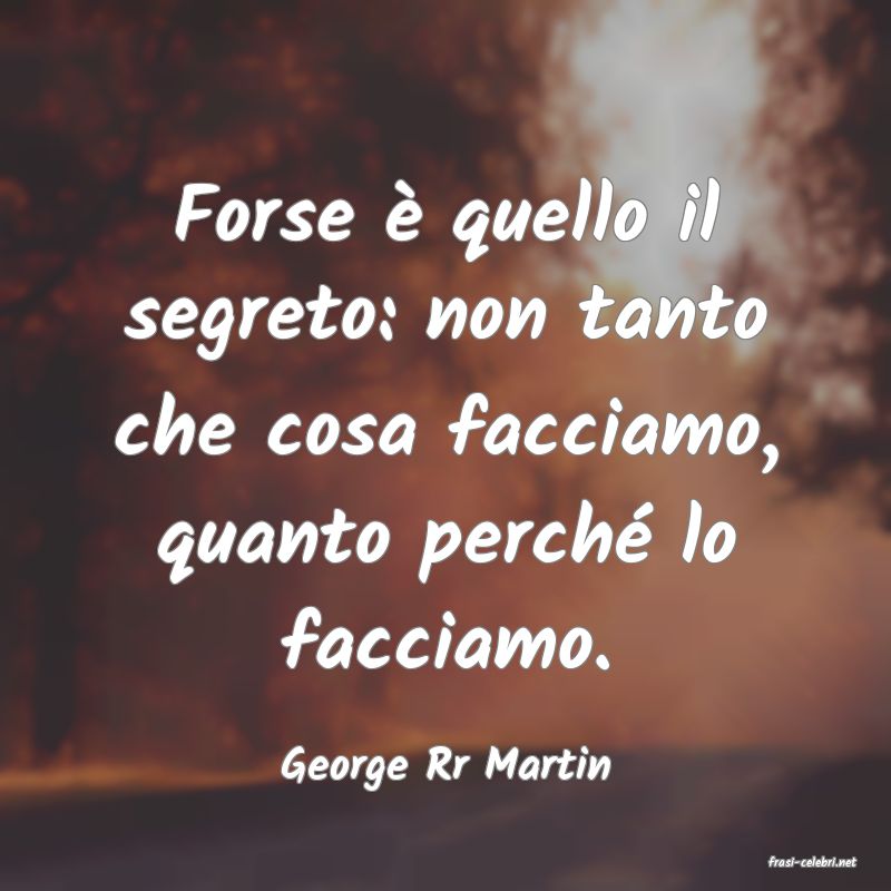 Forse è quello il segreto: non tanto che cosa facciamo, quanto perché lo facciamo.