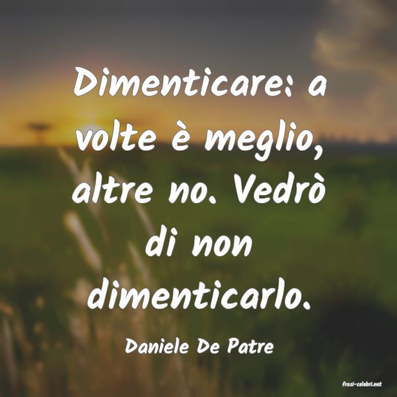 Dimenticare: a volte è meglio, altre no. Vedrò di non dimenticarlo.