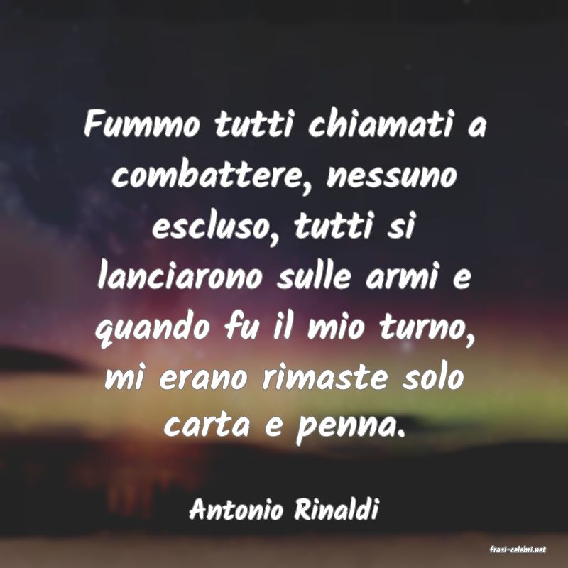 Fummo tutti chiamati a combattere, nessuno escluso, tutti si lanciarono sulle armi e quando fu il mio turno, mi erano rimaste solo carta e penna.