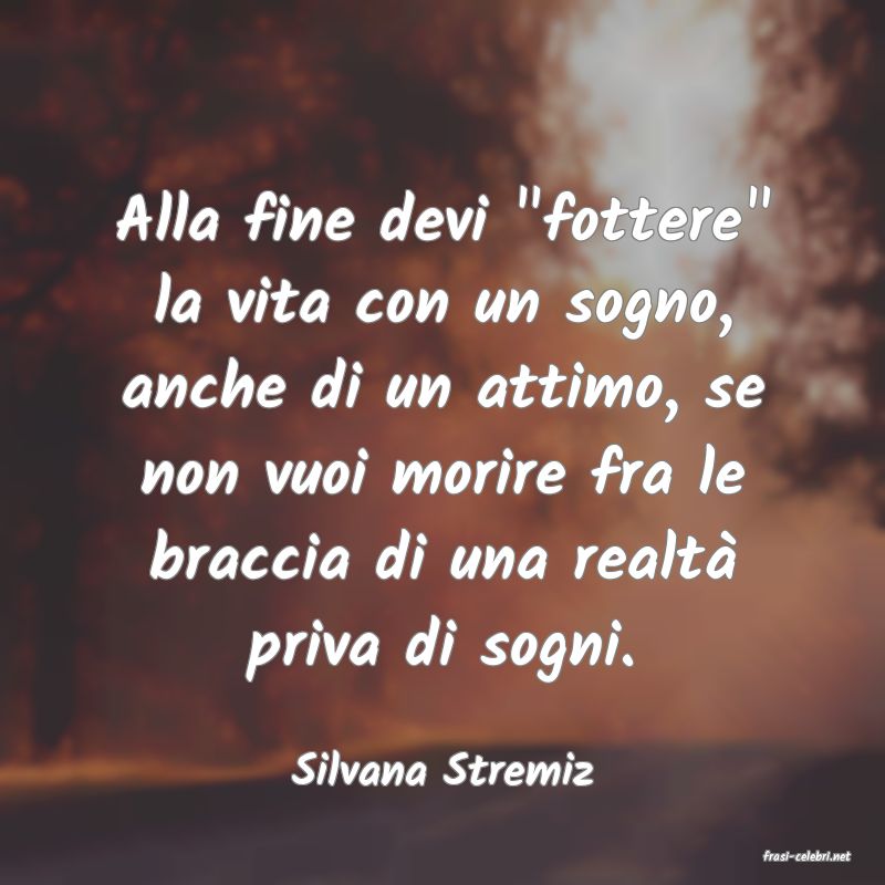 Alla fine devi "fottere" la vita con un sogno, anche di un attimo, se non vuoi morire fra le braccia di una realtà priva di sogni.