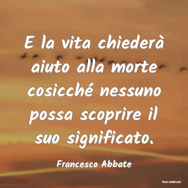 E la vita chiederà aiuto alla morte cosicché nessuno possa scoprire il suo significato.