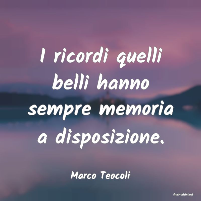 I ricordi quelli belli hanno sempre memoria a disposizione.