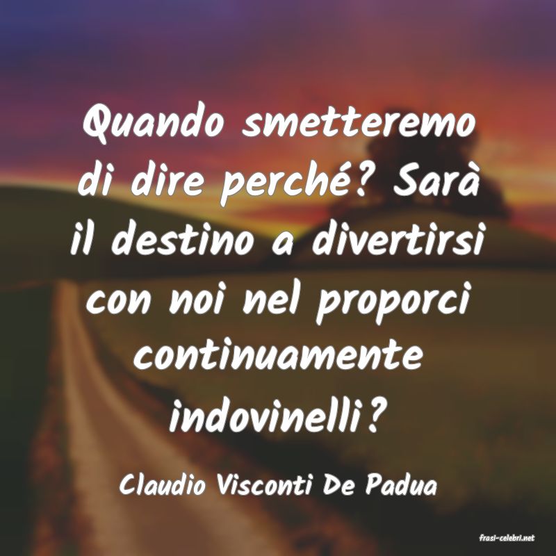 Quando smetteremo di dire perché? Sarà il destino a divertirsi con noi nel proporci continuamente indovinelli?