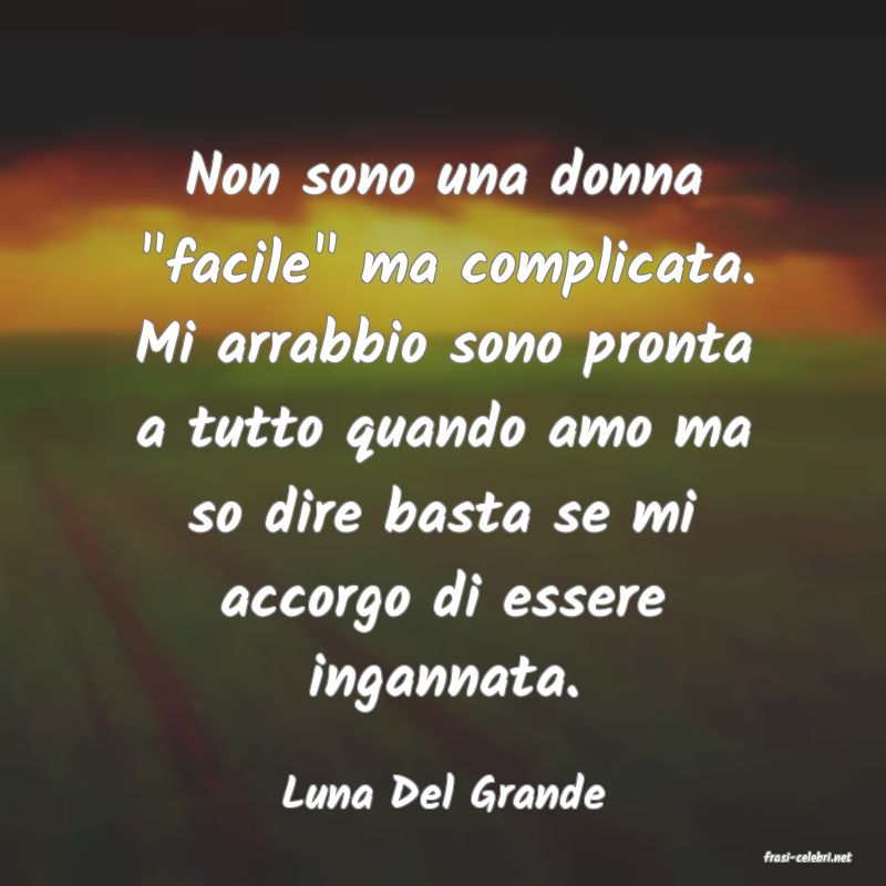 Non sono una donna "facile" ma complicata. Mi arrabbio sono pronta a tutto quando amo ma so dire basta se mi accorgo di essere ingannata.
