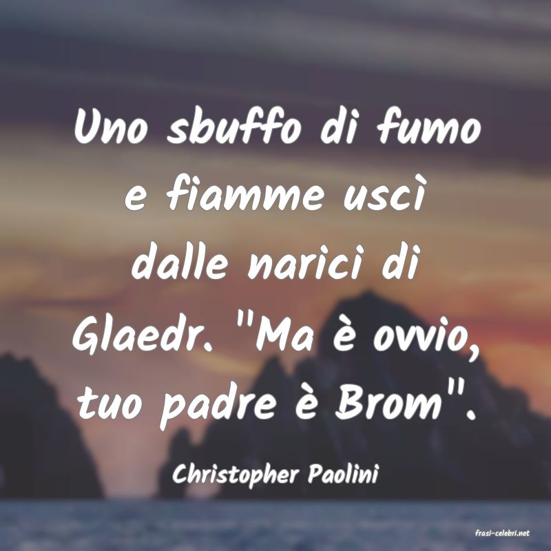 Uno sbuffo di fumo e fiamme uscì dalle narici di Glaedr. "Ma è ovvio, tuo padre è Brom".