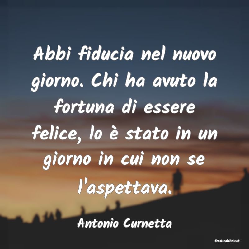Abbi fiducia nel nuovo giorno. Chi ha avuto la fortuna di essere felice, lo è stato in un giorno in cui non se l'aspettava.