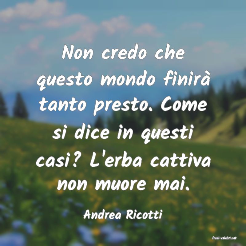 Non credo che questo mondo finirà tanto presto. Come si dice in questi casi? L'erba cattiva non muore mai.