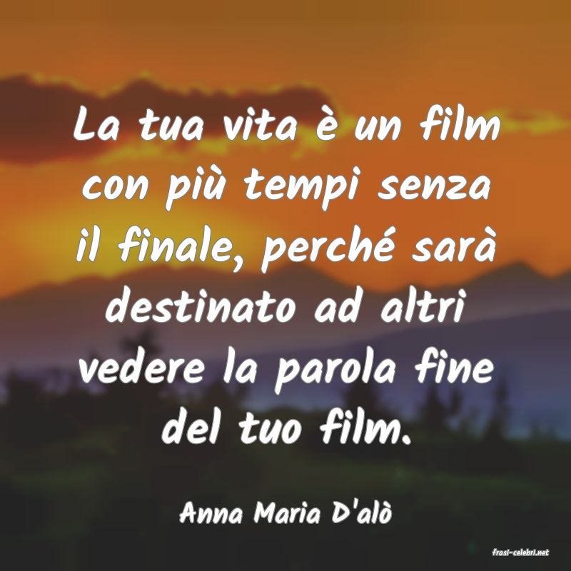La tua vita è un film con più tempi senza il finale, perché sarà destinato ad altri vedere la parola fine del tuo film. Anna Maria D'al?