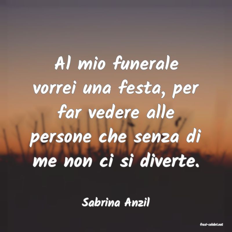 Al mio funerale vorrei una festa, per far vedere alle persone che senza di me non ci si diverte. Sabrina Anzil