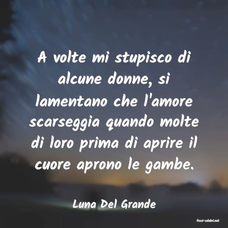 A volte mi stupisco di alcune donne, si lamentano che l'amore scarseggia quando molte di loro prima di aprire il cuore aprono le gambe.