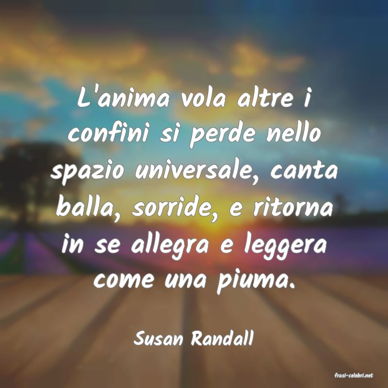 L'anima vola altre i confini si perde nello spazio universale, canta balla, sorride, e ritorna in se allegra e leggera come una piuma.
