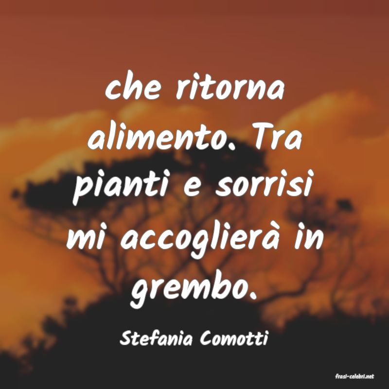 Che ritorna alimento. Tra pianti e sorrisi mi accoglierà in grembo.