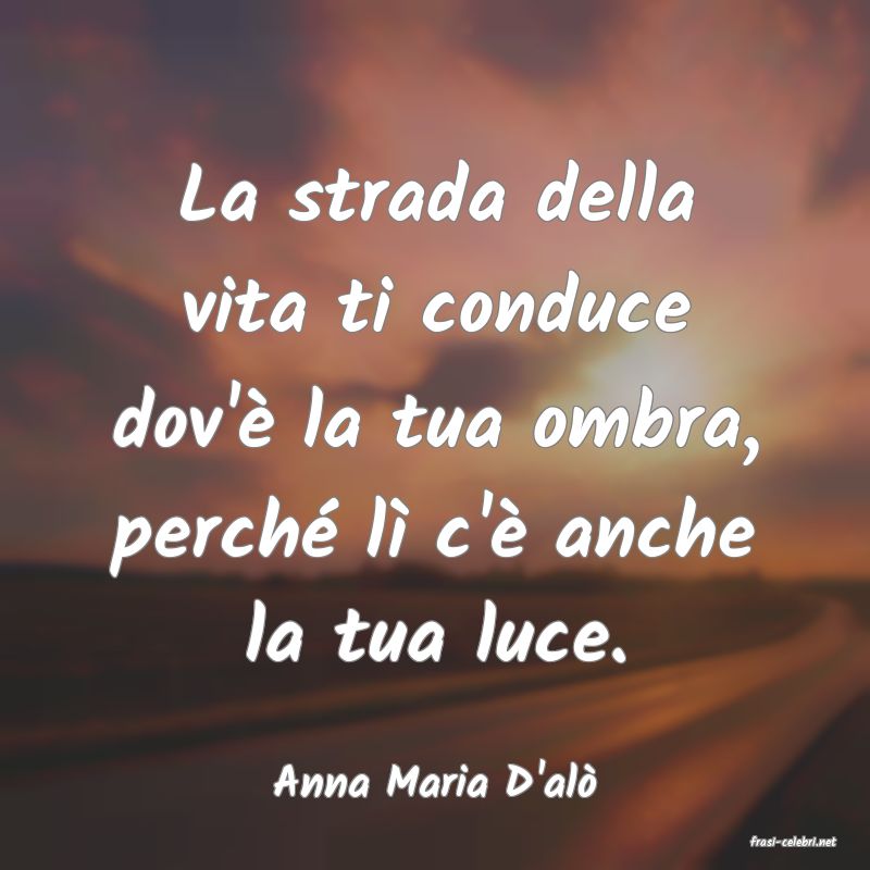 La strada della vita ti conduce dov'è la tua ombra, perché lì c'è anche la tua luce. Anna Maria D'al?