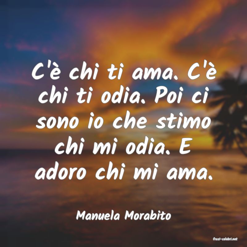 C'è chi ti ama. C'è chi ti odia. Poi ci sono io che stimo chi mi odia. E adoro chi mi ama.