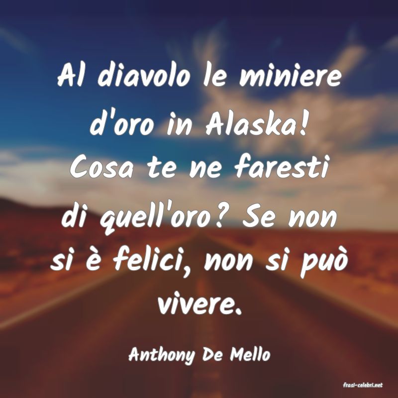 Al diavolo le miniere d'oro in Alaska! Cosa te ne faresti di quell'oro? Se non si è felici, non si può vivere.