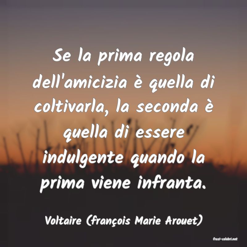 Se la prima regola dell'amicizia è quella di coltivarla, la seconda è quella di essere indulgente quando la prima viene infranta. Voltaire (fran?ois Marie Arouet)