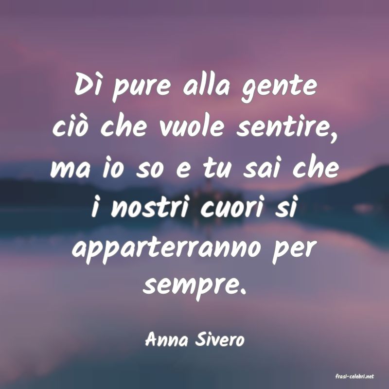 Dì pure alla gente ciò che vuole sentire, ma io so e tu sai che i nostri cuori si apparterranno per sempre.
