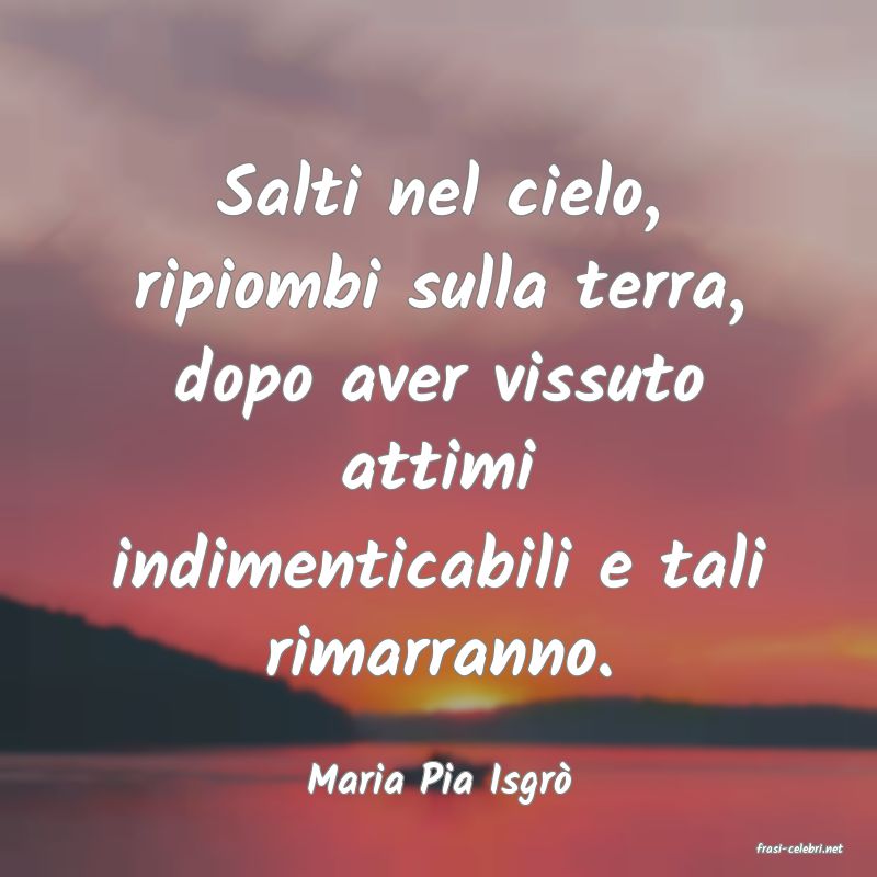 Maria Pia Isgrò: Salti nel cielo, ripiombi sulla terra, dopo aver v