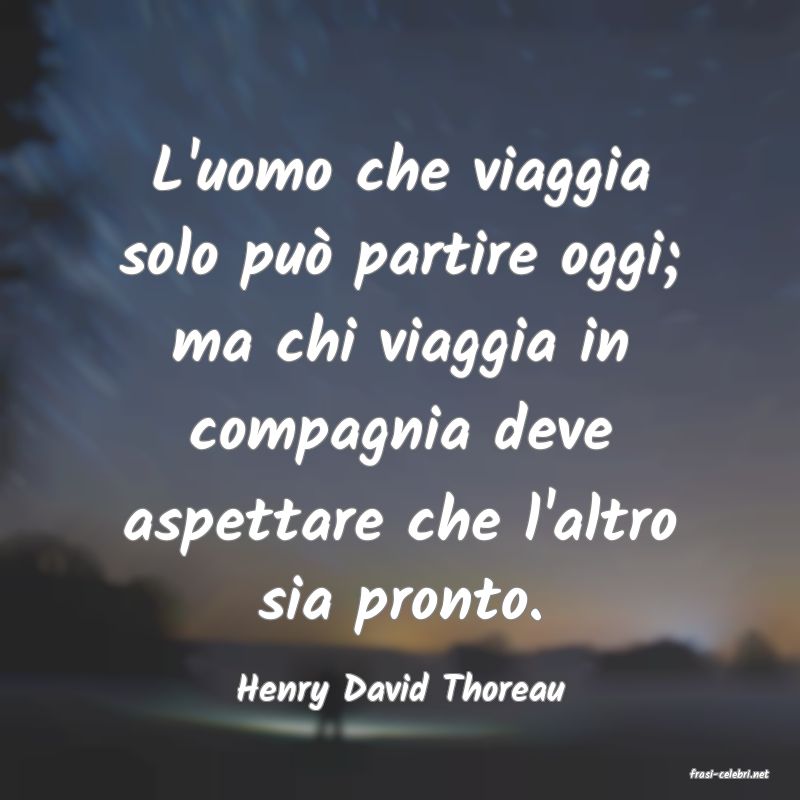 L'uomo che viaggia solo può partire oggi; ma chi viaggia in compagnia deve aspettare che l'altro sia pronto.