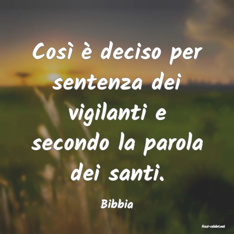 Così è deciso per sentenza dei vigilanti e secondo la parola dei santi.