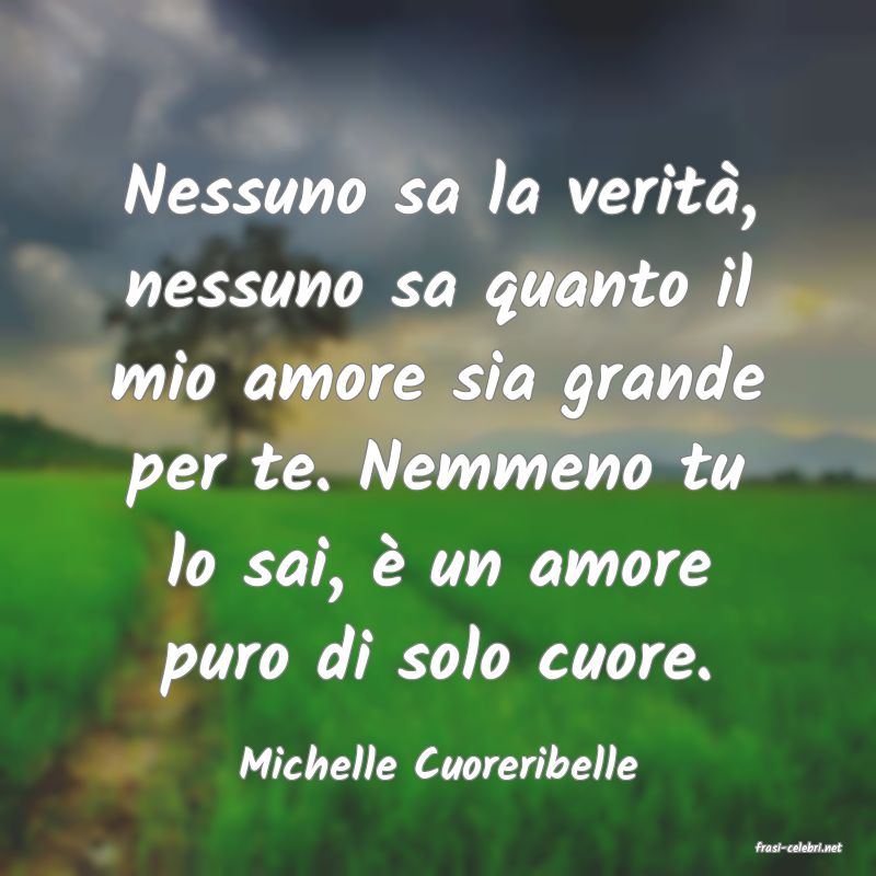 Nessuno sa la verità, nessuno sa quanto il mio amore sia grande per te. Nemmeno tu lo sai, è un amore puro di solo cuore.