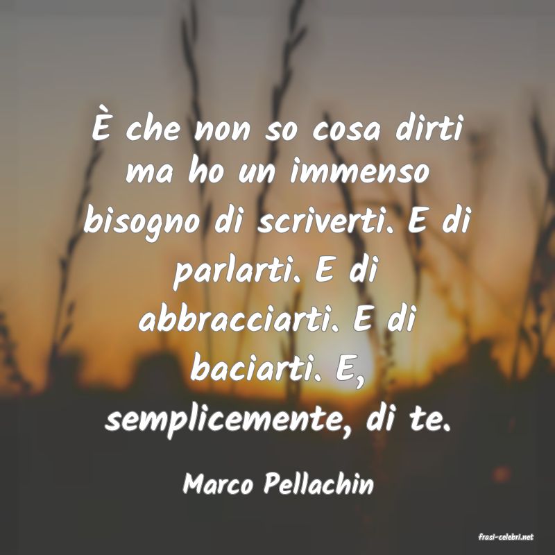 È che non so cosa dirti ma ho un immenso bisogno di scriverti. E di parlarti. E di abbracciarti. E di baciarti. E, semplicemente, di te.