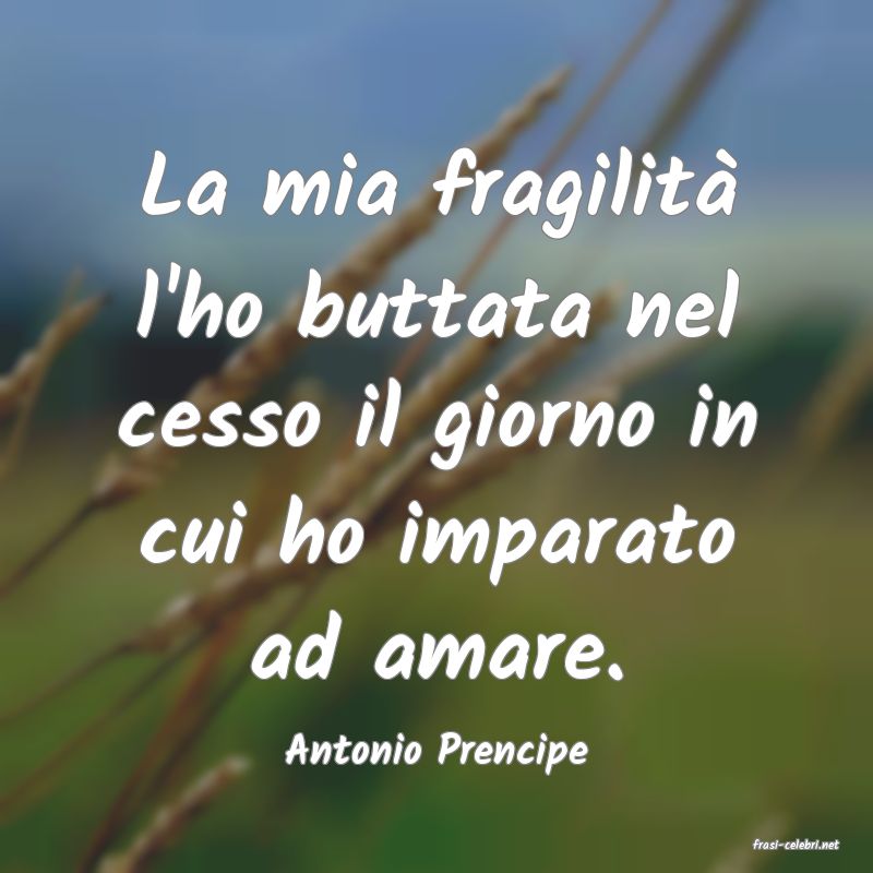 La mia fragilità l'ho buttata nel cesso il giorno in cui ho imparato ad amare.
