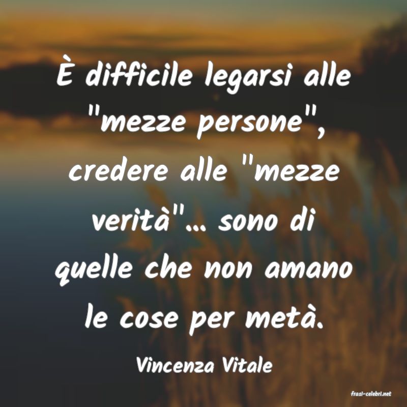 È difficile legarsi alle "mezze persone", credere alle "mezze verità"... sono di quelle che non amano le cose per metà.