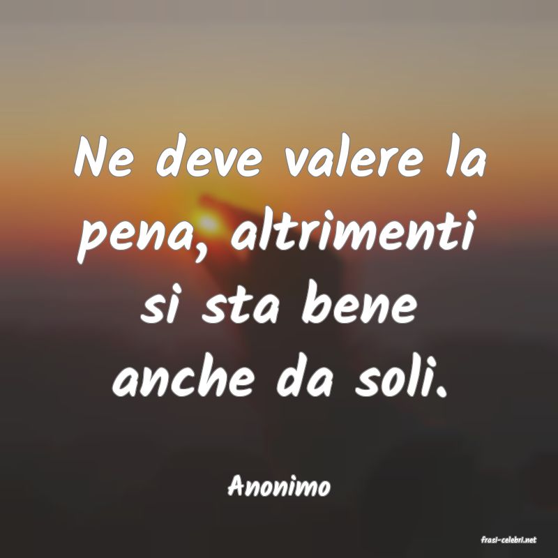 Ne deve valere la pena, altrimenti si sta bene anche da soli.