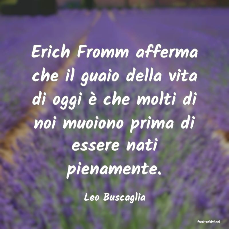 Erich Fromm afferma che il guaio della vita di oggi è che molti di noi muoiono prima di essere nati pienamente.