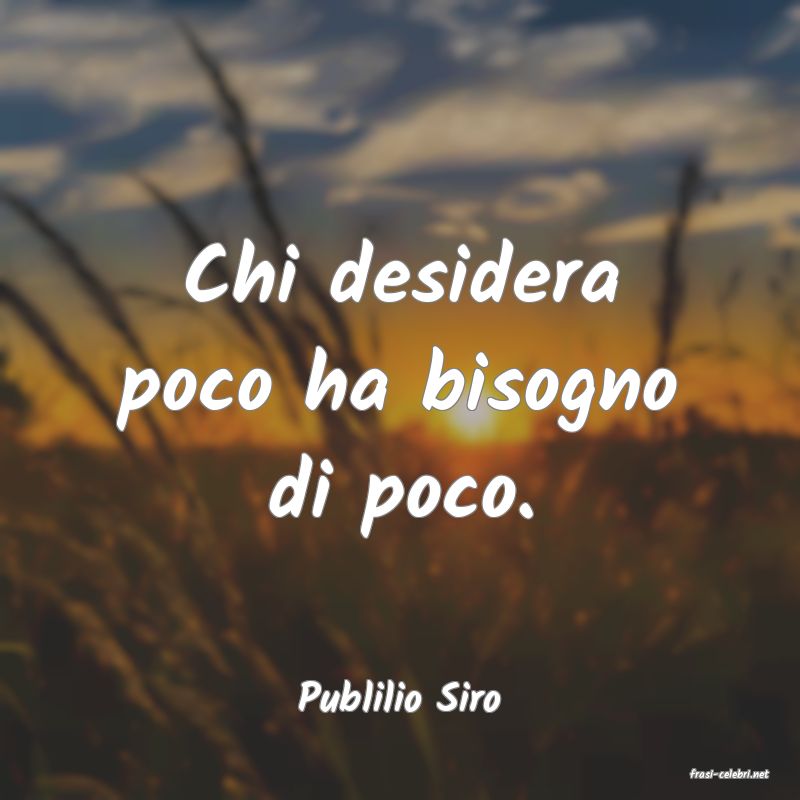 Chi desidera poco ha bisogno di poco. Publilio Siro