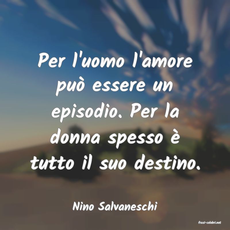 Per l'uomo l'amore può essere un episodio. Per la donna spesso è tutto il suo destino.