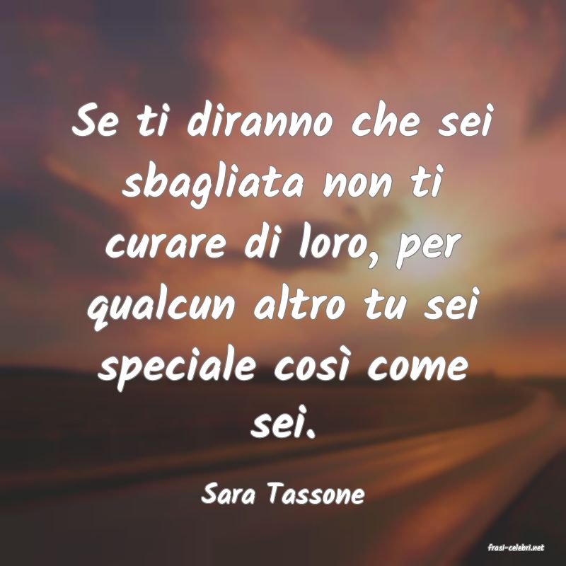 Se ti diranno che sei sbagliata non ti curare di loro, per qualcun altro tu sei speciale così come sei.