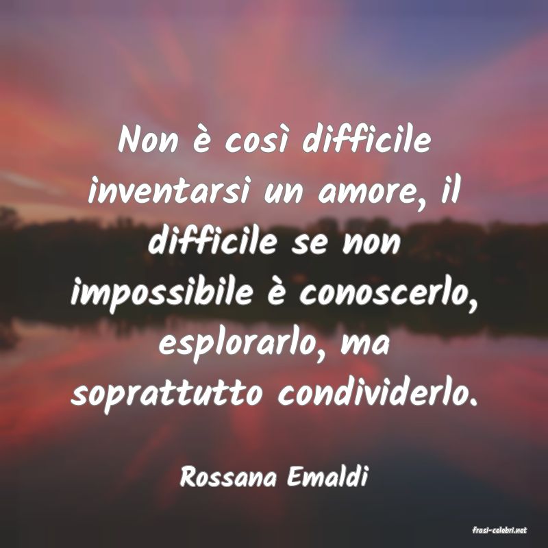 Non è così difficile inventarsi un amore, il difficile se non impossibile è conoscerlo, esplorarlo, ma soprattutto condividerlo.