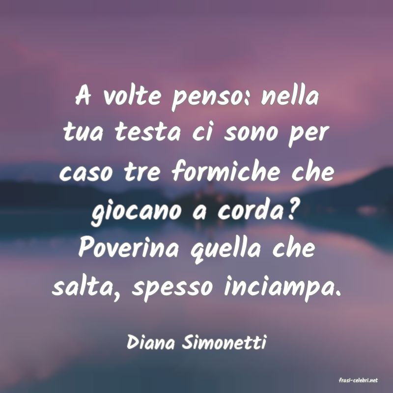 A volte penso: nella tua testa ci sono per caso tre formiche che giocano a corda? Poverina quella che salta, spesso inciampa.