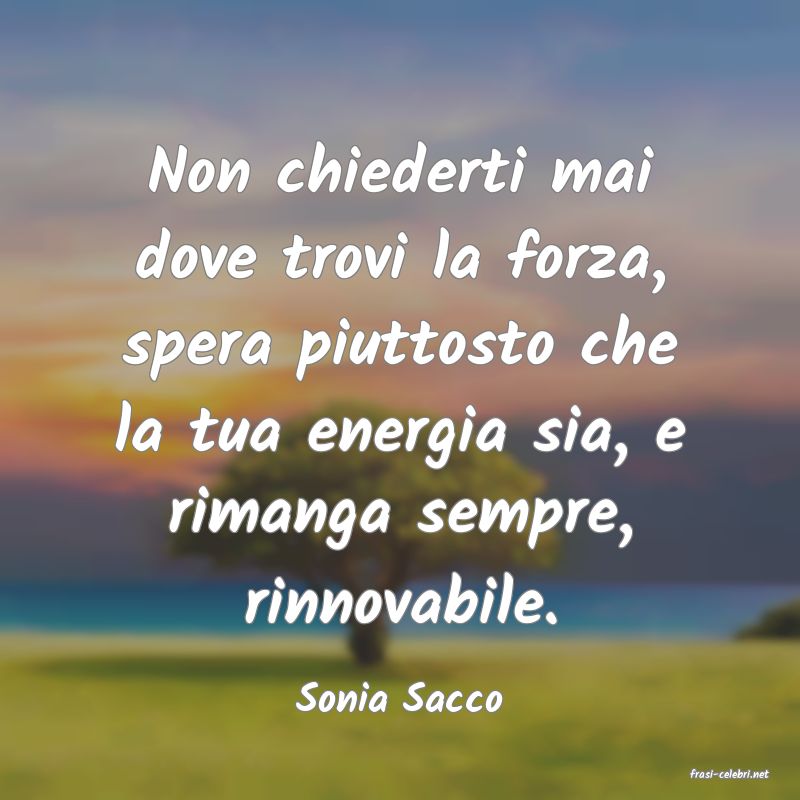 Non chiederti mai dove trovi la forza, spera piuttosto che la tua energia sia, e rimanga sempre, rinnovabile.