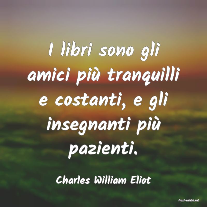 I libri sono gli amici più tranquilli e costanti, e gli insegnanti più pazienti. Charles William Eliot